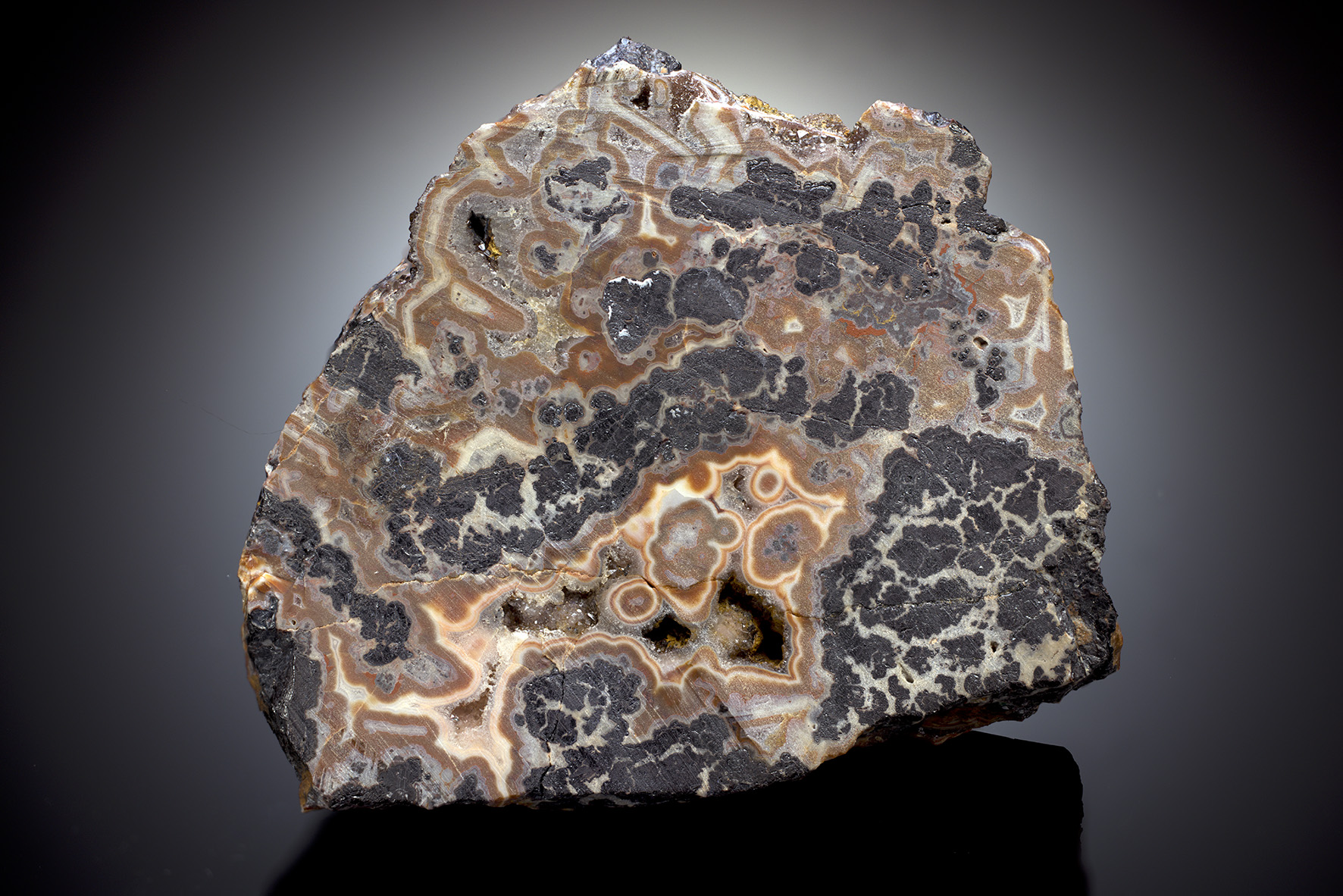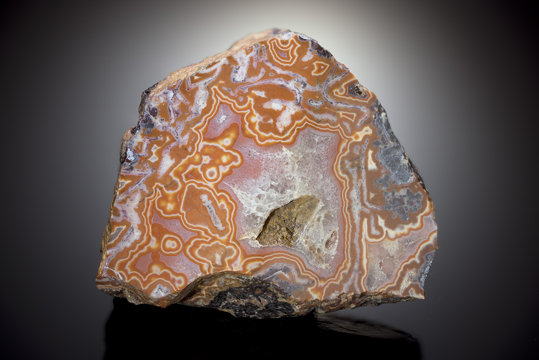 Z jedné strany do oblouku zaříznutý achát, z druhé strany pouze zabroušený s vyšším poddílem hematitu. Tloušťka je na jedné straně 0,7 cm, na druhé straně 3,5 cm a ve středu 4 cm.